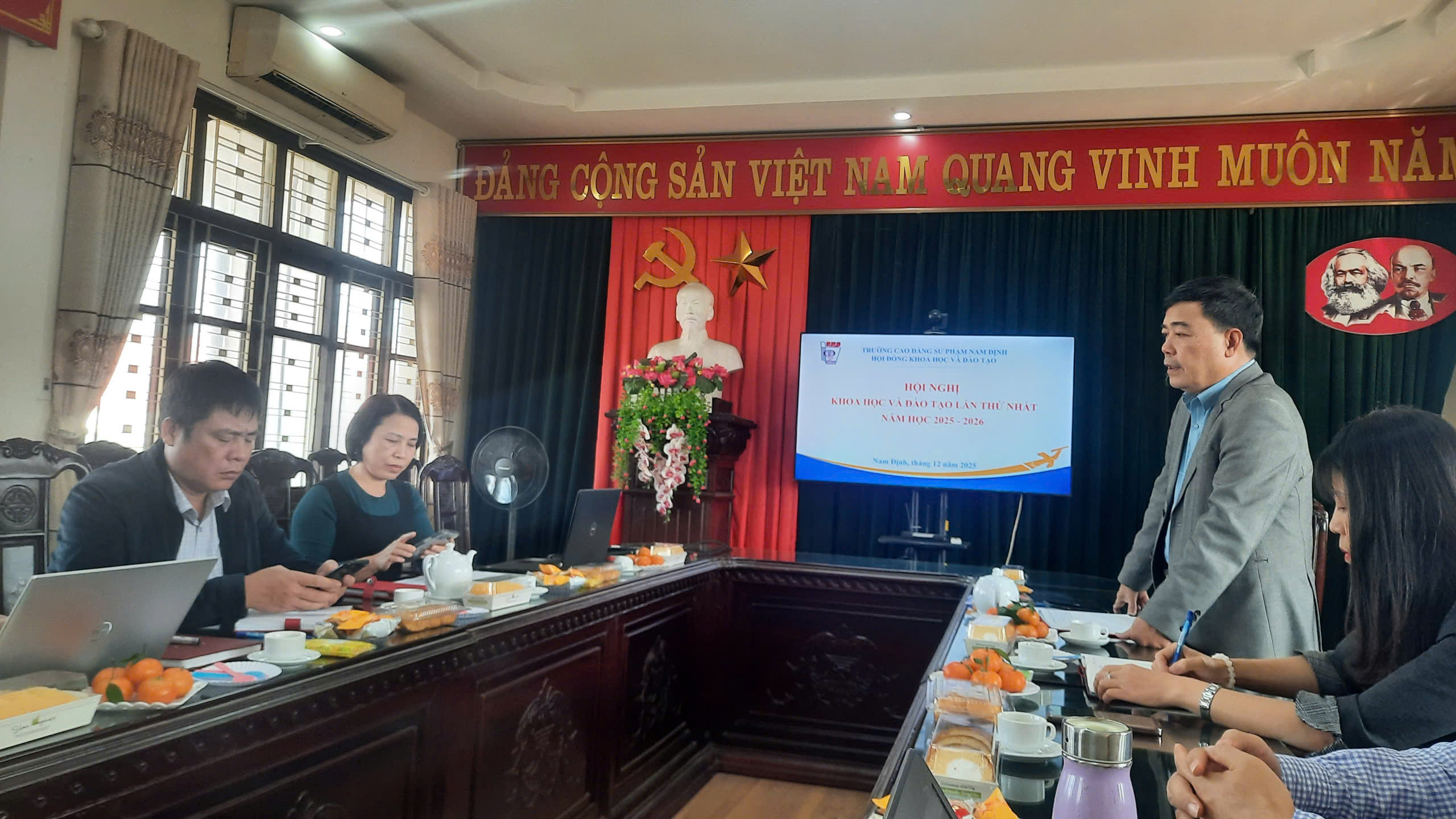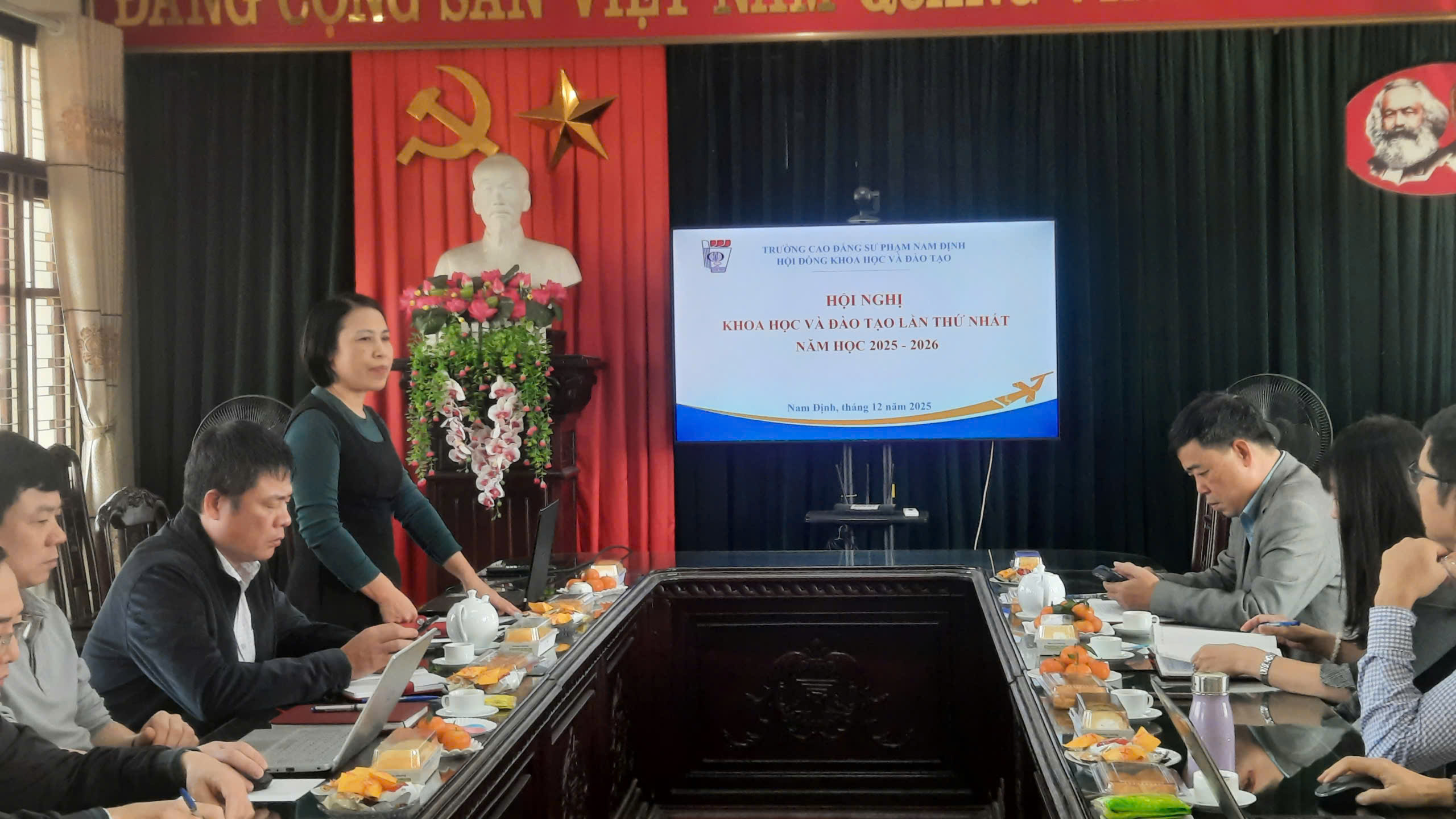 Ngày 18/12/2025, Trường Cao đẳng Sư phạm Nam Định đã tổ chức Hội nghị Khoa học – Đào tạo lần thứ nhất, năm học 2025–2026 của Hội đồng Khoa học và Đào tạo nhiệm kỳ 2023–2028. Hội nghị do ThS. Trần Ngọc Hiển – Hiệu trưởng, Chủ tịch Hội đồng Khoa học và Đào tạo chủ trì, với sự tham dự của đông đủ các thành viên Hội đồng.