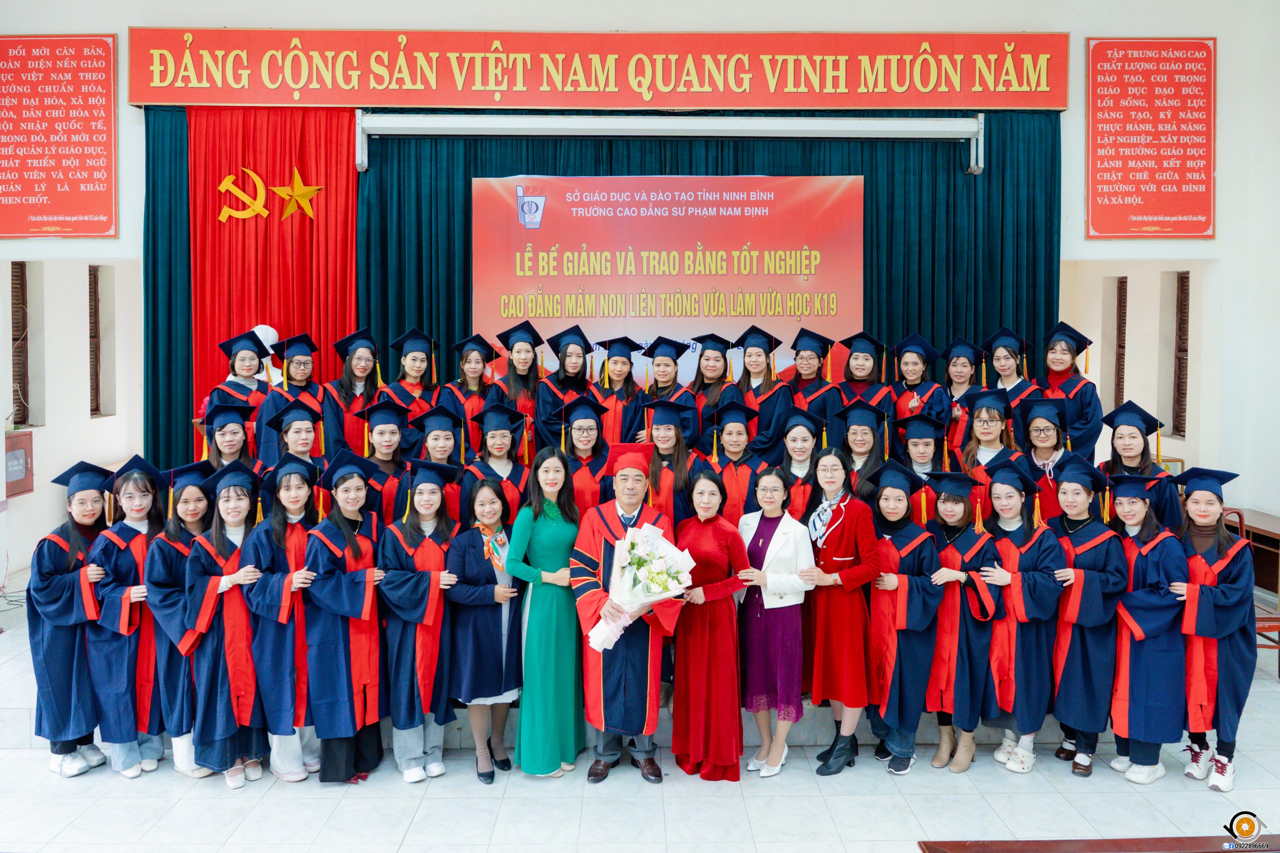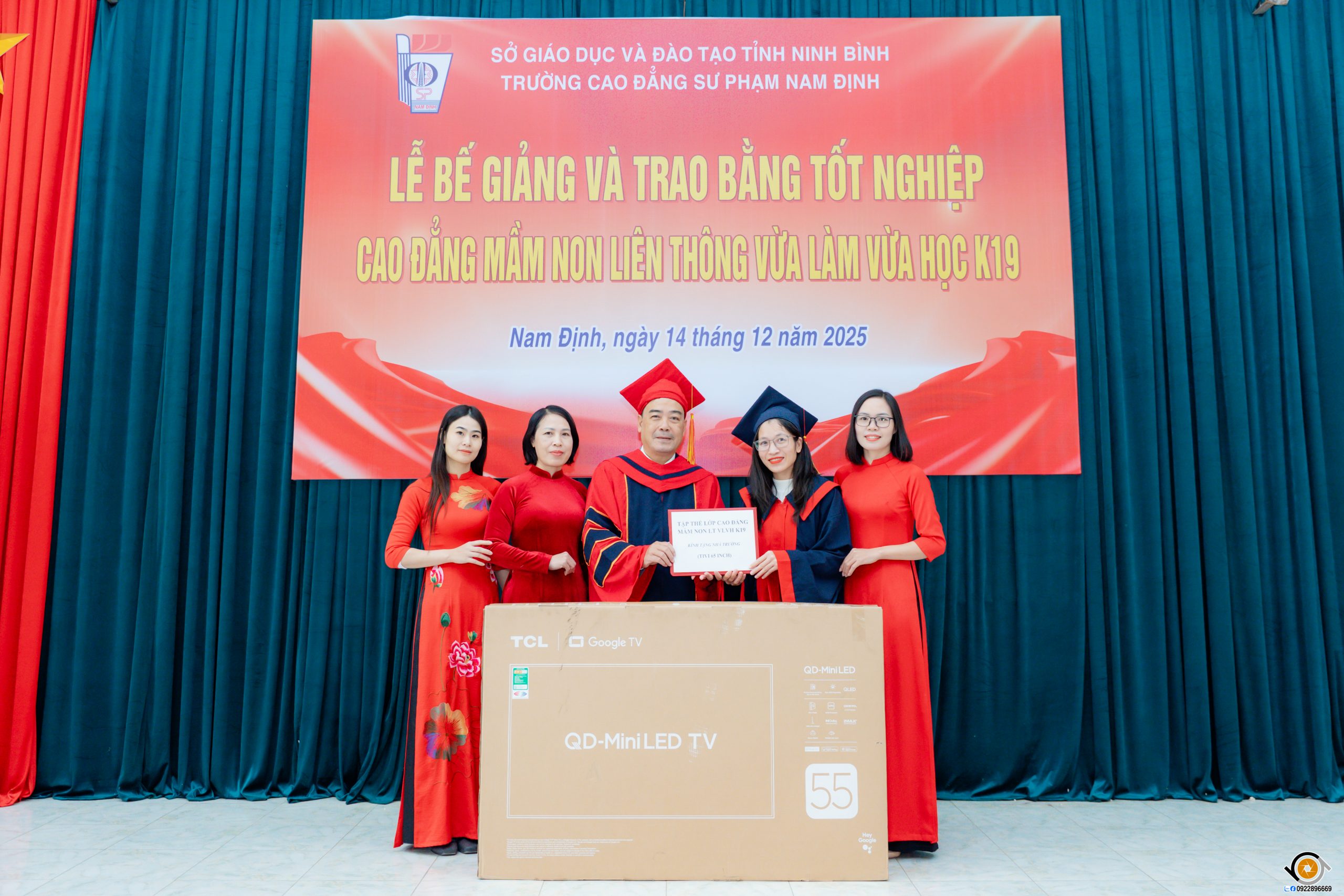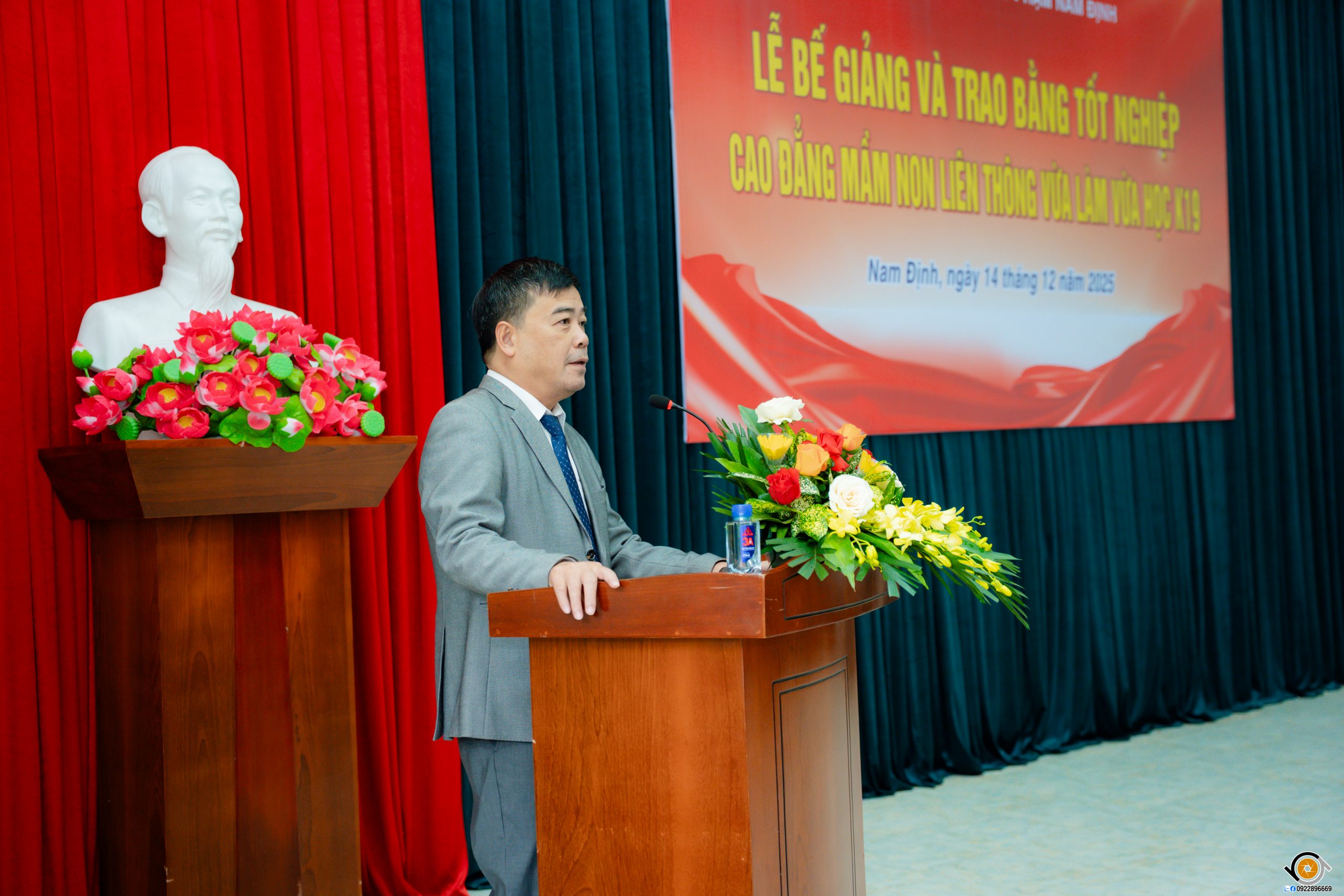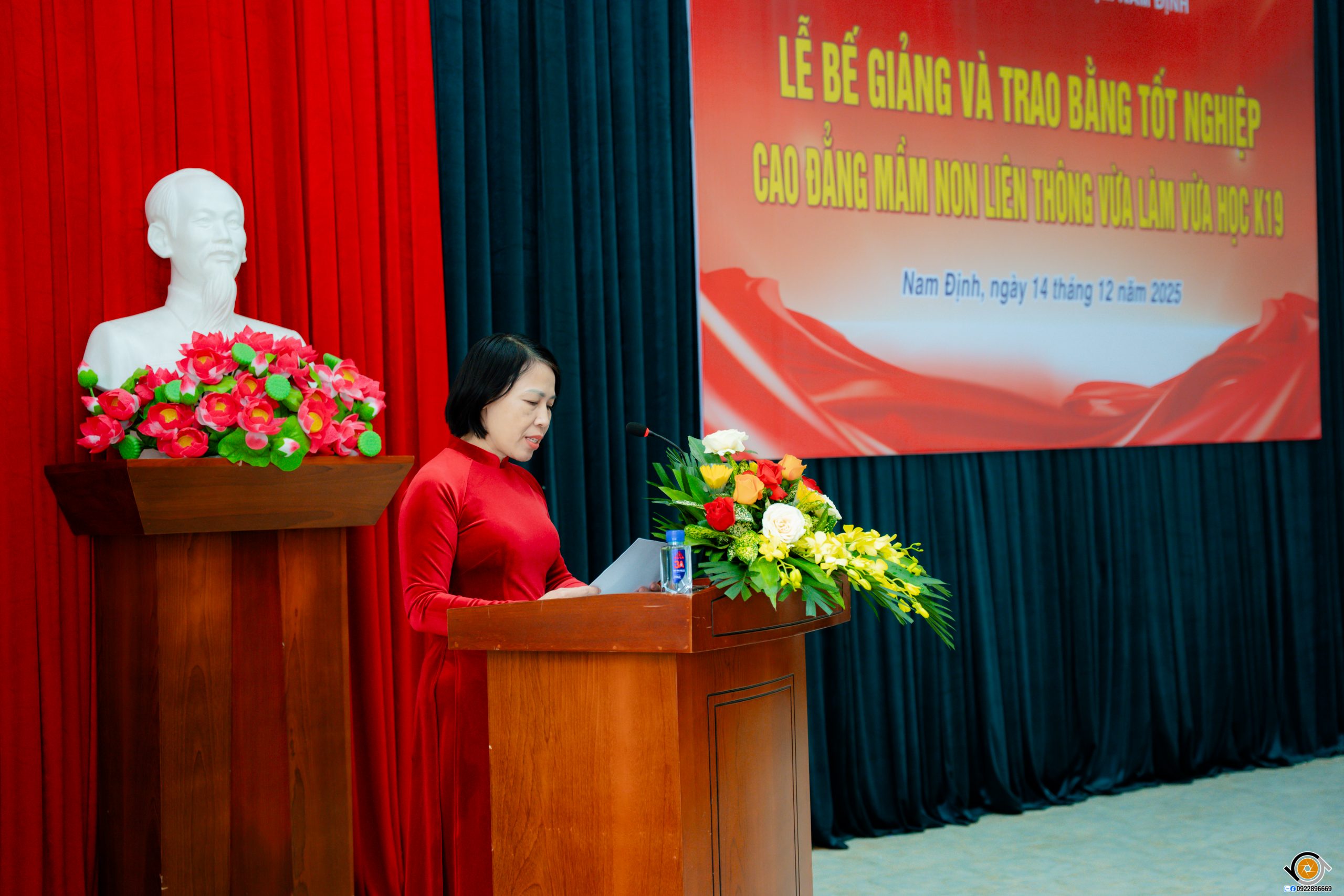 Thực hiện Kế hoạch năm học 2025 – 2026, căn cứ Thông báo số 304/TB-CĐSPNĐ ngày 11 tháng 12 năm 2025 của trường Cao đẳng Sư phạm Nam Định; ngày 14 tháng 12 năm 2025, tại Giảng đường chính, nhà trường đã long trọng tổ chức Lễ Bế giảng và trao bằng tốt nghiệp Cao đẳng Mầm non liên thông hệ vừa làm vừa học Khóa 19.