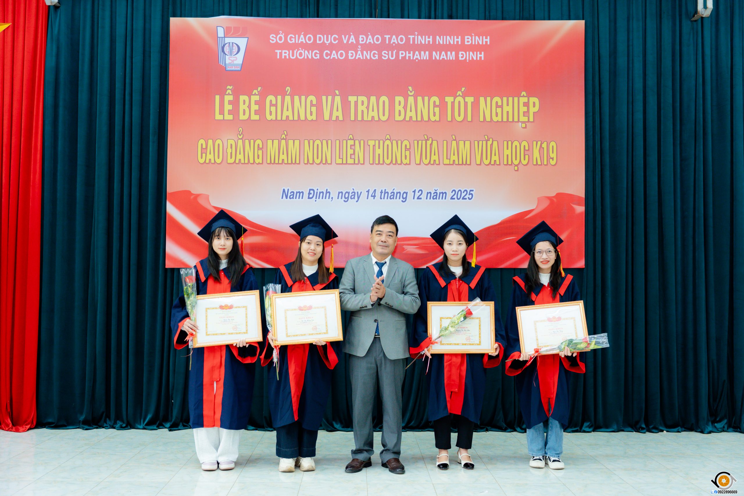 Tại buổi lễ, nhà trường đã công bố Quyết định số 328/QĐ-CĐSPNĐ ngày 12 tháng 12 năm 2025 về việc khen thưởng các học viên lớp Cao đẳng Mầm non liên thông hệ vừa làm vừa học Khóa 19 đã có thành tích xuất sắc trong học tập, rèn luyện toàn Khóa 19 và trong phong trào, hoạt động của nhà trường đông thời tổ chức trao thưởng cho các học viên.