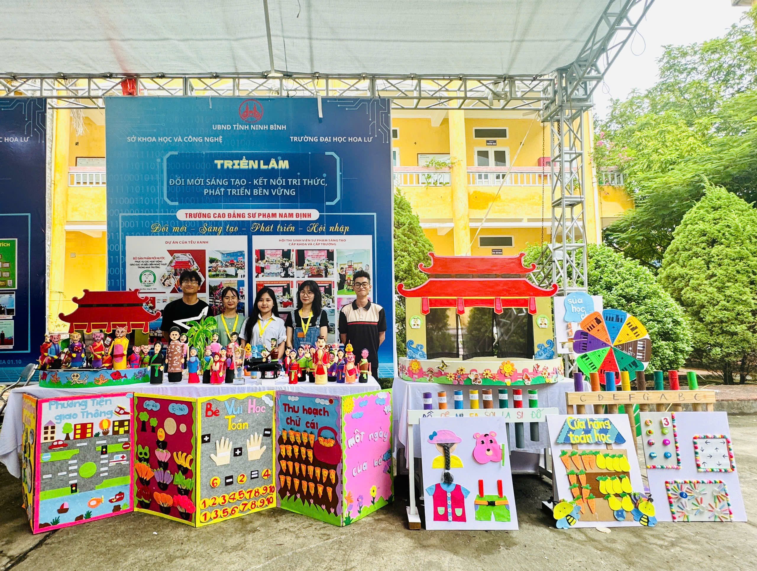 Tham dự triển lãm, Trường Cao đẳng Sư phạm Nam Định đã triển khai gian trưng bày “Bộ sản phẩm Rối nước phục vụ các hoạt động giáo dục, biểu diễn nghệ thuật trong nhà trường” của nhóm Tễu Xanh Cao đẳng Sư phạm Nam Định – đây là dự án đã từng đạt giải Ba và hai giải thưởng phụ trong cuộc thi Tìm kiếm tài năng khởi nghiệp đổi mới sáng tạo thành Nam 2024 do Ủy ban nhân dân tỉnh, Sở Khoa học và Công nghệ Nam Định tổ chức.